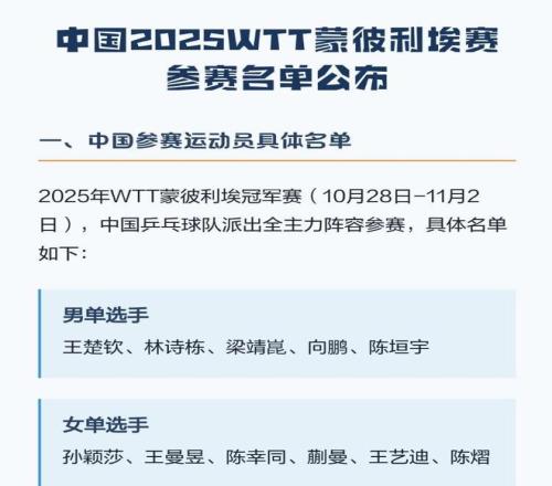 对于这次的法国蒙彼利埃冠军赛,咱的国乒依旧信心满满,主力将全部出击,势要再创辉煌。