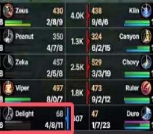 体育资讯10月28日称 S15八强HLE零比二GEN,本局比赛HLE辅助Delight使用波比完全被打出辅助差距,连续冒进送头掉点,最终打出4-8-11的战绩。