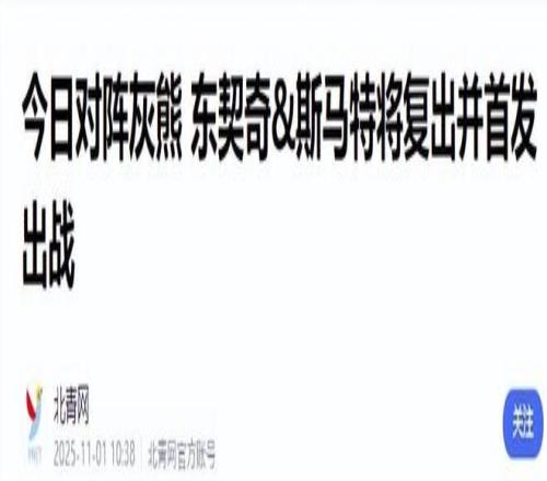 北青网(今日对阵灰熊 东契奇&斯马特将复出并首发出战2025.11.01)