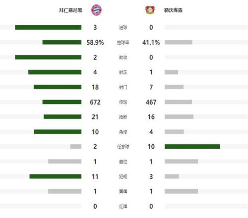 虽然在接下来的时间内,拜仁没有能够进一步改写比分,但他们在防守端也没有给勒沃库森任何的机会,如愿以偿在安联球场零封了对手,终结药厂德甲客场不败的纪录,同时也把自己保持的德甲开赛连胜纪录扩大到了15场。