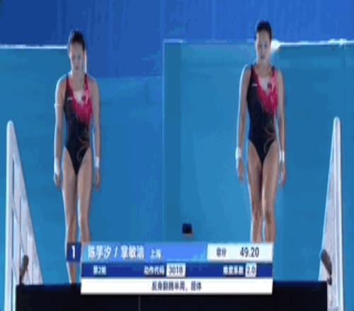 第三跳107b动作上,陈芋汐和掌敏洁仍然保持着同步率惊人的出色发挥,以174.9分领先第二名近10分继续领跑。