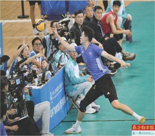 11月11日,香港队球员温迦南在比赛中。当日,在广东江门举行的第十五届全国运动会排球男子成年组小组赛A组比赛中,四川队3比0战胜香港队。