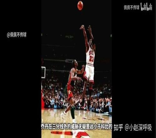 另外要提一嘴,其实科比的三分球要比乔丹好得多得多。虽然乔丹和科比的生涯三分命中率相差无几,但产量以及防守人重视程度上有着云泥之别。你可以说时代原因导致乔丹不重视三分,不过我们还是尽量按照已经发生的事进行分析。可能有的杠精会说乔丹曾经投出过 42.7% 的三分命中率,这种抛开产量谈命中率的话,就当顽童之语了。