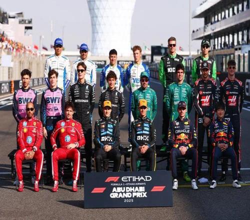 按照惯例,所有车手在阿布扎比大奖赛正赛开始之前将会在赛道上进行合影。下赛季,索伯车队将改换门庭,奥迪车队将隆重登场,同时围场还将迎来第11支车队——凯迪拉克车队;角田离开围场后,哈贾尔将加入大红牛,林德布拉德将亮相小红牛,而博塔斯和佩雷兹将同凯迪拉克一同亮相围场。