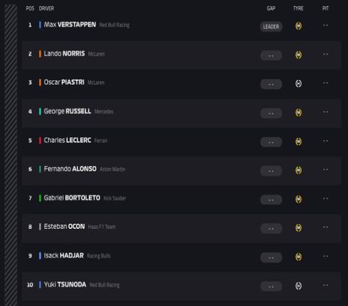 随着五盏红灯熄灭,2025赛季F1收官站——阿布扎比站正赛正式开始!维斯塔潘切线起步,相当干脆的稳住自己的领先位置!随后令人意外的是,白胎起步的皮亚斯特里竟然在9号弯从外线超越黄胎起步的诺里斯来到第二,让诺里斯去到了第三名的位置。