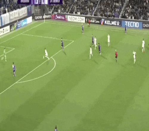 比赛第78分钟,广岛三箭的角球机会,新井直人角球开出,门前荒木隼人头球破门。上海申花队0-1落后。