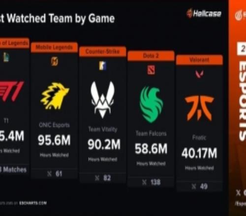 体育资讯12月17日称 今日外媒统计2025年度收视率最高战队(不包含大陆地区),具体如下: