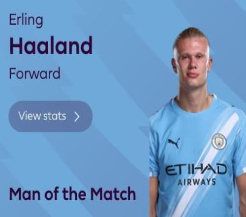 最终经过英超官网球迷投票,哈兰德以94%的超高得票率当选全场最佳球员。