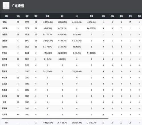 山东队为何输掉了比赛呢?进攻效率并不差,命中率高达56%,和广东队持平。但是,失误太多了,17-7,单单这一项,就被广东队抓住了机会,利用失误得分高达32分。