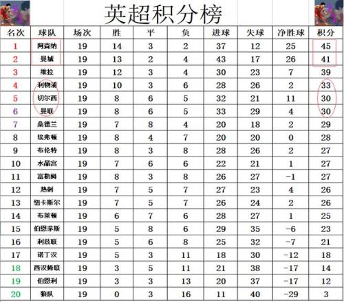 英超最新积分战报半程冠军阿森纳笑了!曼城连胜终止少榜首4分