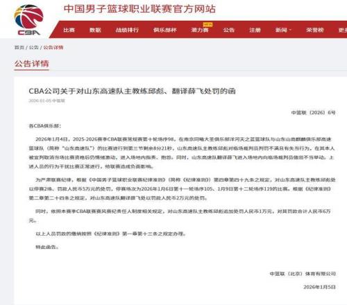 对于这样的行为,CBA公司自然是不惯着。于是,在1月5日深夜,一纸罚单来了。