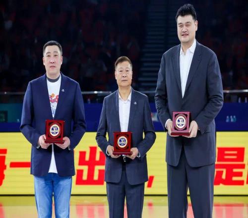 在仪式的最后,俱乐部向俱乐部功勋李秋平、姚明、章文琪和刘炜颁发功勋纪念章。这枚纪念章,是对那段峥嵘岁月最崇高的致敬。当他们并肩而立,仿佛时光在这一刻交汇,上海篮球的荣耀与传承尽收眼底。