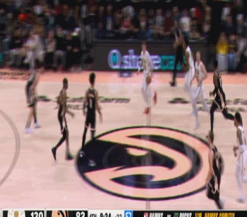 迎着老狐狸的防守,45度角的甩狙3分命中,追到2分直接打停马刺。