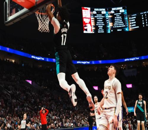 开拓者全队22次罚球!进入第二节,文森特和蒂米内外开花,克林根续上三分,斯马特滑翔上篮,老詹终于得到罚球机会,此后詹姆斯继续强攻+暴扣,但小乐福和格兰特重新拉开分差。后半段格兰特干拔跳投,罗威造杀伤+暴扣,范德比尔特和八村塁给出回应,半场结束时,湖人61-71落后开拓者。进入下半场,斯马特连中三分球,克林根和夏普轮流暴扣,湖人内线都被打穿了。此后卡马拉和夏普下三分雨,老詹艰难造犯规,好在斯玛特手感不错。中段霍勒迪和格兰特继续外线轰炸,克林根轻松暴扣。