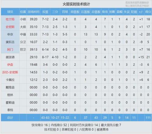 自文班剃头之后,此前3胜0负,今天第一次输球。最后看看数据,说说感受: