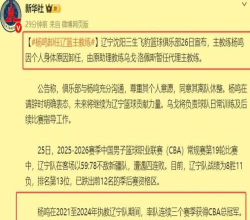 值得一提的是,杨鸣辞去辽篮主教练这件事,就连《新华社》也关注和报道了,可见杨鸣和辽篮绝对都是CBA的顶流。